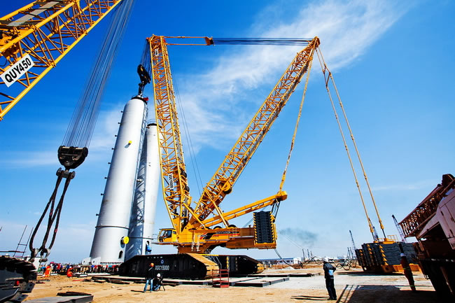 公司擁有大型吊裝設備履帶式起重機六十余臺,吊裝能力50T-1000T